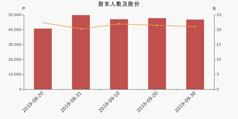 2019年8月20日至今,公司股东户数显著增长,区间涨幅为14.86%。2019年8月20日至2019年9月30日区间股价下降6.12%。